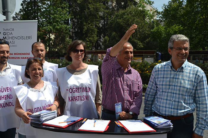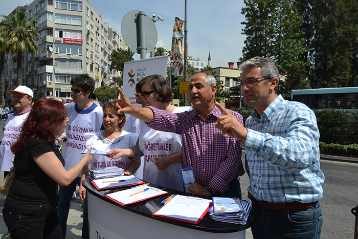 Türkiye Gıda Mühendisleri Odası Genel Merkezi tarafından ‘’Gıda Güvenliğinin Sağlanmasında Gıda Mühendislerinin Rolü’’ adı altında başlatılan çalışmaların İzmir ayağı, bugün öğlen saatlerinde Alsancak Kıbrıs Şehitleri Caddesi’nde açılan imza standıyla başladı.