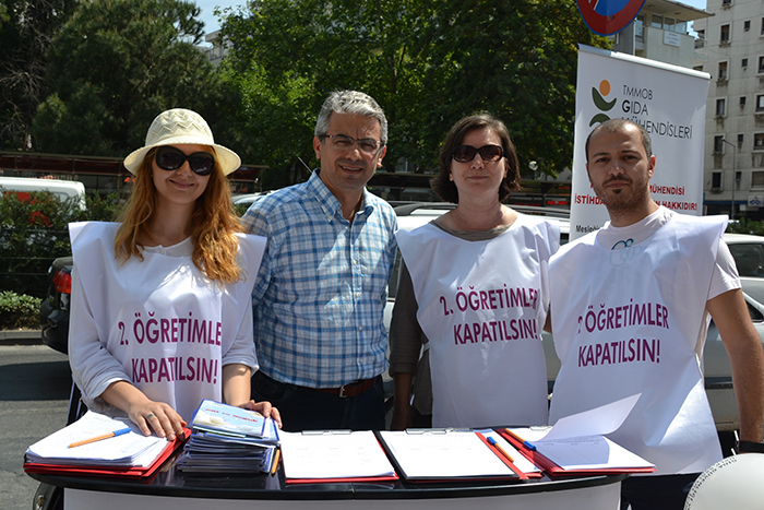 Bugüne kadar 20 bin civarında imza topladıklarını, imzaları bakanlığa göndereceklerini dile getiren TMMOB Gıda Mühendisleri Odası İzmir Şube Başkanı Hülya Yılmaz, ‘’Bugüne kadar 20 bin civarında imza toplandı. Bu imzalar genelde bizim meslektaşlarımızdan değil kamuoyundan aldığımız imzalar yani bu kampanya kamuoyuna yönelik bir kampanya. Bizim taleplerimiz sadece istihdam ve kamuda istihdamla da sınırlı değil. İşin başında üniversitelerde gıda mühendisleri bölümlerinin artık sınırlandırılması, ikinci öğretimlerin kapatılması ve kontenjanların sınırlandırılmasıyla başlıyor taleplerimiz. Kontenjanlar arttıkça işsizler de artacak. Soruna çözüm bulmamamız imkansız hale gelecek. Sorunumuzun çıkış noktası orası. Daha sonra da istihdam konuları geliyor. İmzaları bir heyet olarak bakanlığa iletmeyi düşünüyoruz. Umarım bakanlık bu talebi de dikkate alır. Gıda mühendisleri dışlanmak istiyor gibi bir algı yaratılıyor, bize haksız olduğumuzu göstersin, gıda mühendislerimizden istihdam etsin, biz de bakanlıktan özür dileyelim sevinerek’’ diye konuştu.