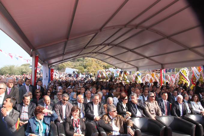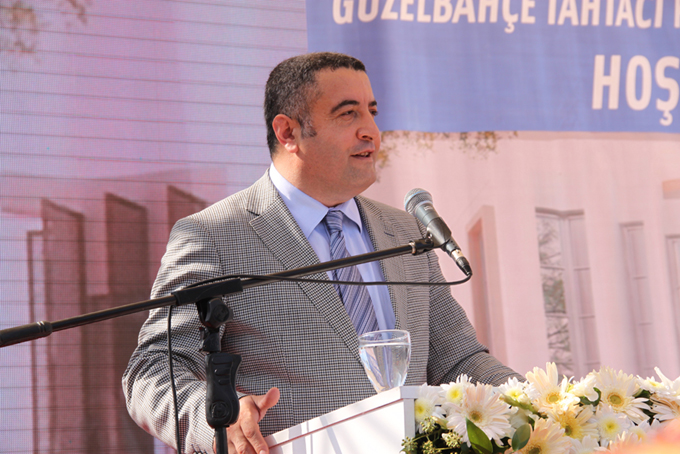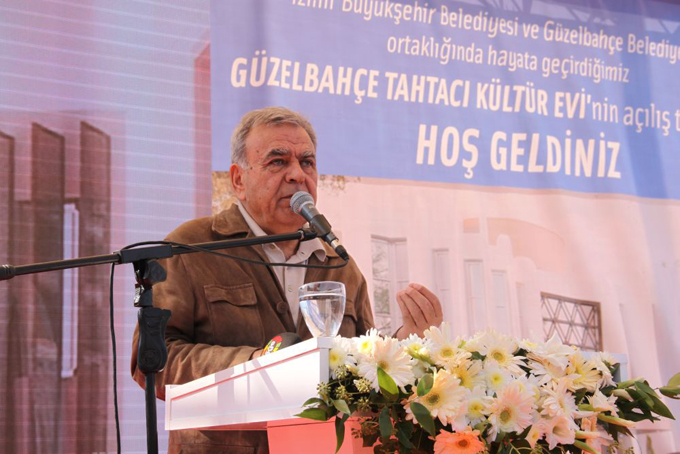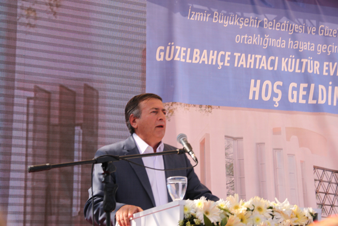 Güzelbahçe Belediyesi’nin hazırladığı Güzelbahçe Tanıtım Filmi’nin gösteriminden sonra kürsüye gelen Güzelbahçe Belediye Başkanı Mustafa İnce konuşmasına “Değerli dostlarımız, sevgili canlar” diyerek başladı. Başkan İnce, “Bugün açılışını yapacağımız bu tesis 2009’da yerel seçimler sırasında tüm siyasi partilerin seçim vaatleri içerisinde bu projeyi gerçekleştirmek vardı. Bu proje özümsenmişti ve halk tarafından da isteniyordu. Başkan Kocaoğlu’na gittim, kim ne derse desin, her gittiğimde de istediğimi aldım. 9 Temmuz 2012’de bize yer tahsisi sağlandı. Harekete geçerek sayısız dede ve dernek temsilcisi ile bu projeyi tartıştık ve hazırlığımızı yaptık. 2 Temmuz 2013’te temel atarak projeyi 120 günde hayata geçirdik. Tüm emeği geçen hayırseverlere ve bağışçı dostlarımıza teşekkür ediyorum. Gece gündüz demeden çalıştık ve açılışı gerçekleştiriyoruz. Büyükşehir Belediye Başkan’ımız ile birlikte Güzelbahçe için, İzmir için çalıştık. Esas büyük projemiz, Güzelbahçe’deki ilk kapalı otopark, pazaryeri, düğün salonu, yolların yenilenmesi, balıkçı barınağı, yürüyüş yolları gibi projelerdir. Biz birlikte çalışmaya devam edeceğiz. Yorulmadan hizmet etmeye devam ediyoruz. Devam etmek de istiyoruz. Biz yolumuza sizinle ve Aziz Kocaoğlu ile devam etmek istiyoruz. Sizinle başladığımız kapalı otopark ve pazaryeri sizinle açmak istiyoruz. İlçemize deniz yolu seferlerini sizinle başlatmak istiyoruz. Biz nefreti değil, sevgiyi, hor görmeyi değil, hoşgörüyü, düşmanlığı değil kardeşliği sergileyen bir eseri hayata geçiriyoruz” diye konuştu.