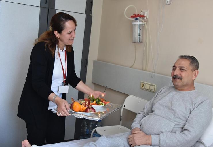 Manisa'da yaşayan diyabet (şeker) hastası Selahattin Yanar'ın (55), İzmir'deki Buca Seyfi Demirsoy Devlet Hastanesi'nde gördüğü tedaviyle sol ayağı son anda kesilmekten kurtarıldı. Yanar, 55’inci yaş gününü de pasta keserek değil, hastane personelince salatalık, domates, havuç gibi meyve ve sebzelerden hazırlanan doğum günü tabağındaki mumları üfleyerek kutladı.