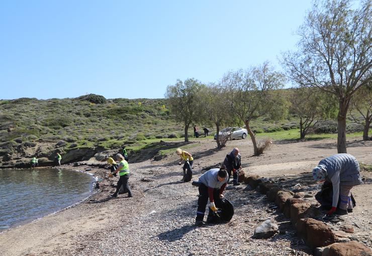Bodrum Belediyesi tarafından gerçekleştirilen temizlik etkinliği, gönüllülerin destekleriyle Küdür sahilinde devam etti.
