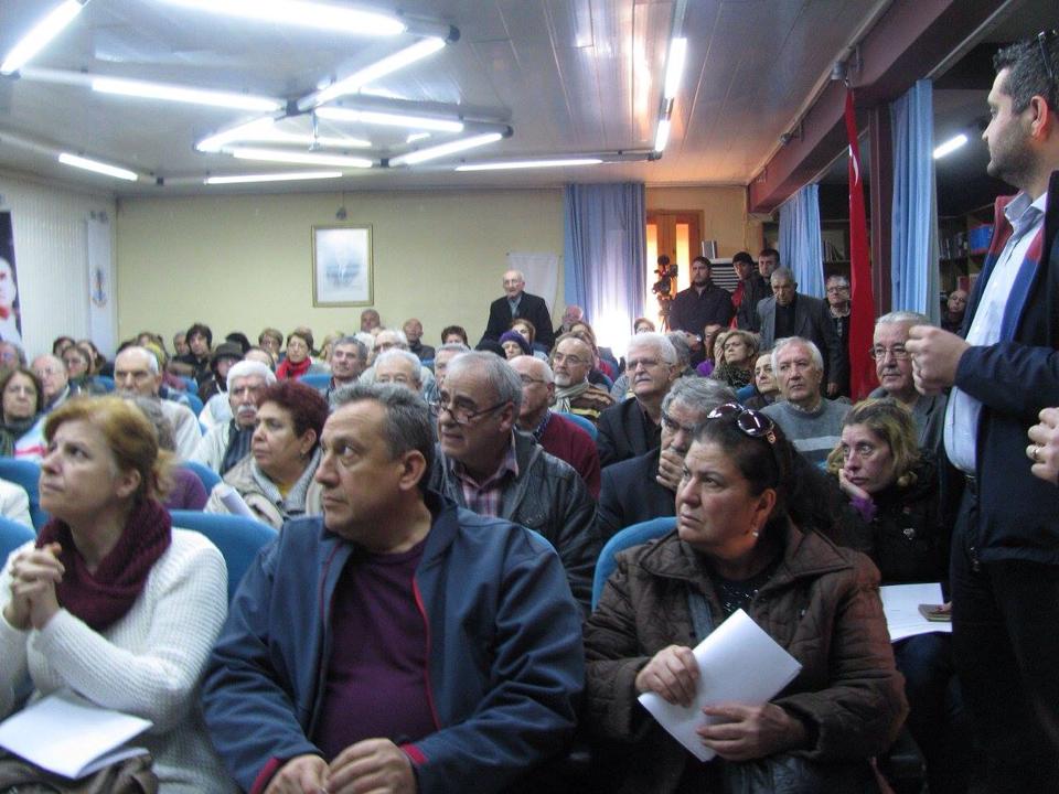 Yeni yönetim seçilmesi ardından konuşma izni isteyen Dikili ADD önceki Yönetim Kurulu Üyesi ve İzmir CHP Gençlik Kolları Kurultay Delegesi Uğur Özcan konuşmasında Dikili Belediyesi tarafından kurucuları AKP’li olan ANKA Üniversitesi’ne arazi tahsil edinmesine değinince salonda gerilimli anlar yaşandı.