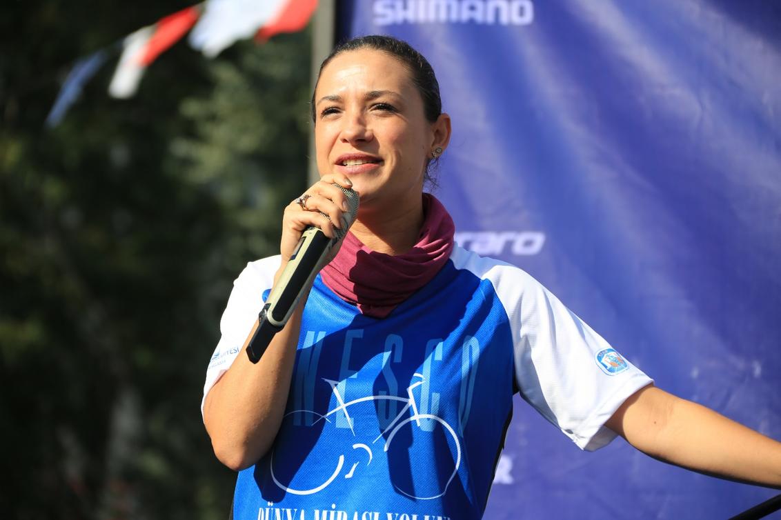 Organizasyona katılan her bisikletçinin fidan bağışı yapmasının önemine dikkat çeken Efes Selçuk Belediye Başkanı Filiz Ceritoğlu Sengel; "Bugün 8500 yıllık bir tarihe sahip olan Efes Selçuk topraklarındasınız. UNESCO Dünya Mirası Yolunda Bisiklet Turu, dünya miraslarının amatör bisiklet sporcularının dünya miraslarını pedallarla buluşturduğu, bu buluşmanın ormanları oluşturduğu, aynı zamanda dünya miraslarını oluşturan değerlerin korunması için kadınların ve gençlerin öne çıkması gibi amaçlarla düzenleniyor. Bu toprakların kendisi kadındır. Artemis’ten Meryem Ana’ya, Kybele’den Amazonlara kadar giden topraklardasınız. Çok doğru bir iş yapıyorsunuz. Her bisikletçi dört fidan bağışlıyor. Bu organizasyona değer veren, katkı koyan herkese teşekkürlerimizi sunuyoruz" dedi.