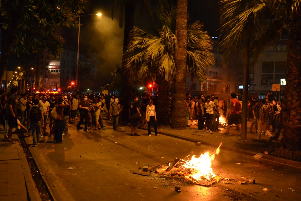 Gündoğdu Meydanı’nda ateş yakarak gece boyunca eylemlerini sürdüren göstericiler, sabah saatlerinde Basmane’deki Dokuz Eylül Meydanı’na slogan atarak yürüdü.Olaylarda 90 kişinin gözaltına alındığı öğrenildi.