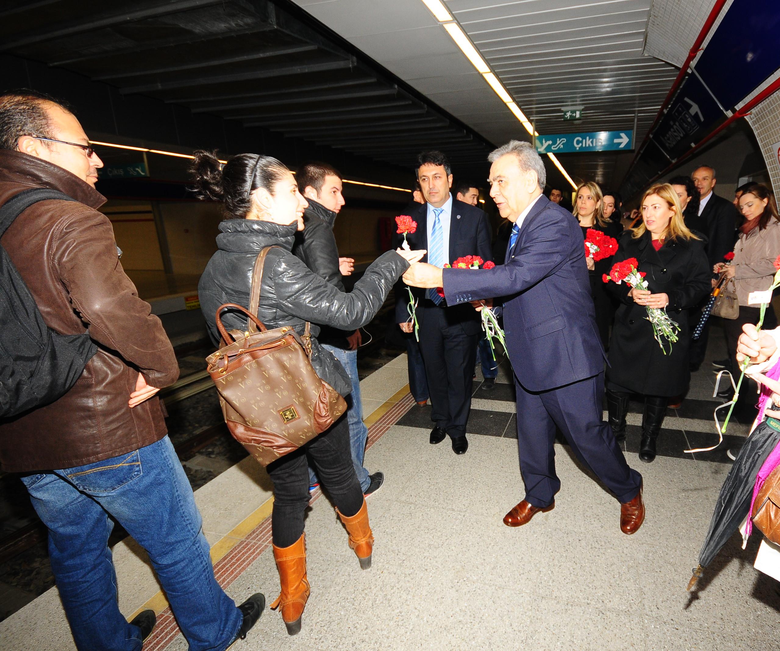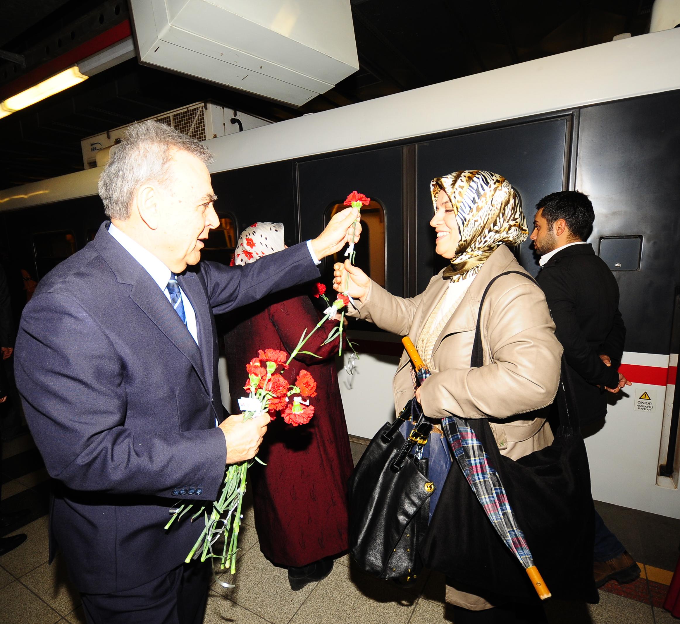 8 Mart Dünya Kadınlar Günü’ne metronun bayan yolcularına karanfil dağıtarak başlamayı bir gelenek haline getiren İzmir Büyükşehir Belediye Başkanı Aziz Kocaoğlu, kadına yönelik şiddete son verilmesini istedi.