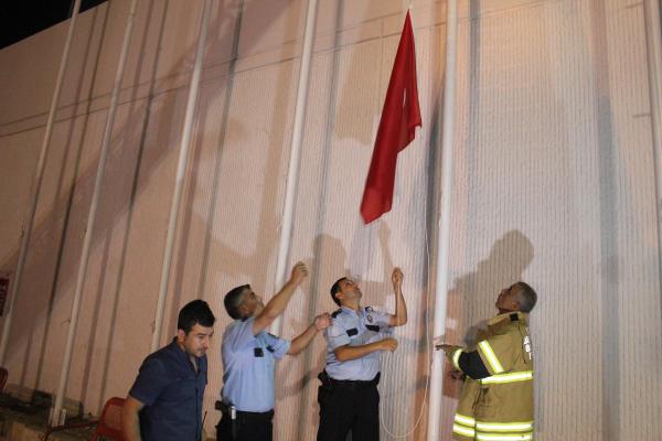 İzmir'in Narlıdere İlçesi'nde, Demokrasi Meydanı'nda bulunan Türk Bayrağı'nı indirmeye çalışan iki kişi polis tarafından engellendi. Türk Bayrağı itfaiye ekipleri tarafından tekrar göndere çekildi.