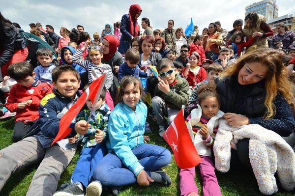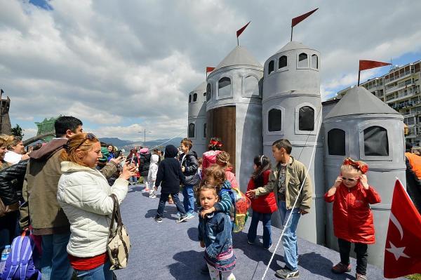 Sabah okullarında 23 Nisan Ulusal Egemenlik ve Çocuk Bayramı'nı kutlayan çocukların, daha sonraki adresi, Alsancak'taki Gündoğdu Meydanı oldu. İzmir Büyükşehir Belediyesi, kutlama etkinlikleri kapsamında meydana Keloğlan Köyü'nün aynısını kurdu. Çocuklar burada Keloğlan çizgi filminin karakterlerinin evlerini gezip, kullandıkları malzemelerle oynadı. Çocuklar daha sonra ise Keloğlan çizgi filmi karakterlerinin gösterisini beklemeye başladı. Film karakterlerini çığlık atarak çağıran çocuklar, gösterileri ilgiyle izledi. Sahnede söylenen şarkılara, danslara onlar da bulundukları yerden eşlik etti.