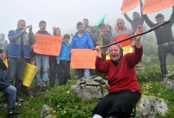 Çalışmanın durdurulması üzerine alkışlarla tempo tutan grup hep bir ağızdan "Denizi aldınız, dereyi çaldınız, yaylaya gelmeyi kolay sandınız, Rize size yalan, Yeşil Yol katliam, yaylaya dozeri sokturmayız, bas geri bas geri, al da git askeri' dizeleri ile türküler söyledi. Yaylada iş makinesinin önünde nöbete başlayan vatandaşlar bekleyişlerini, Jandarma komando birlikleri ise iş makinesinin çevresinde ellerinde kalkan ve biber gazları ile aldıkları güvenlik önlemini sürdürüyor.