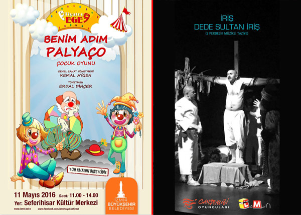 İlk gösterim 11 Mayıs 2016 Çarşamba günü Seferihisar Kültür Merkezi’nde saat 11.00 ve 14.00’te ES-TO Tiyatrosu’nun “Adım Palyaço” isimli çocuk tiyatrosu ile gerçekleştirilecek. 15 Mayıs 2016 günü saat 20.00’de İsmet İnönü Sanat Merkezi’nde Tiyatro Terminal’den “Woyzek”, 20 Mayıs 2016’da Kültürpark Gençlik Tiyatrosu’nda Tiyatro Evi’nden “Nasreddin Hoca Gide Gide”, 22 Mayıs 2016’daoca Hoca İzmir Sanat’ta Han Tiyatrosu’ndan saat 10.00- 11.30—13.00-14.30 (Çocuk ) ve 20.00 saatlerinde “Çirkin”, 23-25 Mayıs 2016’da Çiğli Kültür Merkezi’nde 11.00-14.00 saatlerinde Mavi Çocuk Tiyatrosu’ndan ‘Kivi Tigi”, 24-25 Mayıs 2016’da Bornova Kültür Merkezi’nde saat 11.00-14.00 saatlerinde Tiyatro Punta’dan “Oyuncak Dükkanı” isimli oyunlar gösterilecek. Ayrıca Karaburun Yarımadası’nda 600 yüzyıl önce yaşamış halk önderi Börklüce Mustafa için düzenlenecek festival kapsamında, 30 Mayıs’ta saat 17.00 ve 20.00’de Güzelbahçe Tuncel Kurtiz Salonu’nda, 31 Mayıs’ta ise saat 20.30’da Karaburun Belediye Salonu’nda Can Şenliği Tiyatrosu’ndan “İriş Dede Sultan” isimli tiyatro oyunu İzmirlilerle buluşacak.