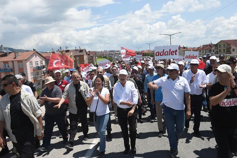 ‘Adalet Yürüyüşü’ne Türkiye’nin ve dünyanın dört bir yanından destek gelirken, Kılıçdaroğlu’nun yürüyüş güzergahında karşılaştığı vatandaşlardan da olumlu tepkiler aldığı görülüyor. 25 gün sürecek 432 kilometrelik yürüyüşün yedi günü geride kaldı. Yoğun tempo ve artan sıcaklıklarda mola süreleri de uzatıldı. Adalet Yürüyüşü’nün 7’nci günü İstanbul’a 300 kilometre kala Gerede’ye bağlı Sipahiler Mevkii’nde sona erdi. 19 kilometre yürüyen CHP Genel Başkanı Kemal Kılıçdaroğlu ve beraberindekiler geceyi burada kurulan kamp alanında geçirdi. Tarihi yürüyüş CHP lideri Kılıçdaroğlu’nun yaptığı açıklama ile başladı.