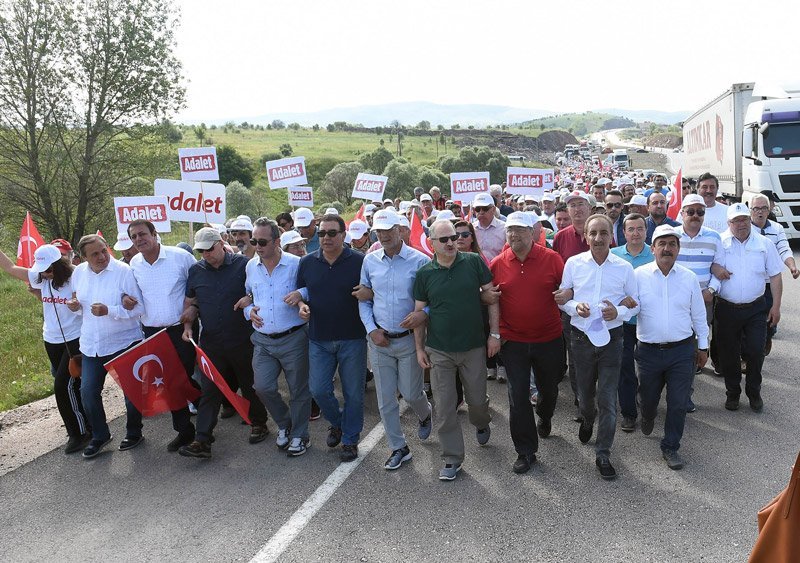 Dün 19 kilometre yürüyen CHP Genel Başkanı Kemal Kılıçdaroğlu ve beraberindekiler geceyi burada kurulan kamp alanında geçirdi. Tarihi yürüyüşün sekizinci gün etabı başladı. Yürüyüşten önce kısa bir açıklama yapan CHP lideri, MHP lideri Bahçeli'nin sözlerine de yanıt verdi. Kılıçdaroğlu "Sayın Bahçeli açıklama yapıp eleştirmiş. Canı sağolsun istediği eleştiriyi yapabilir. Bana göre Hükümet Sözcülüğüne de soyunabilir. Ben hayatım boyunca ne Pensilvanya'ya gittim ne Pensilvanya'yla konuştum ne de Pensilvanya bana teşekkür etti. Fethullah Gülen rahatsız olduğu dönemde gazete ilanlarına bakın. O kime teşekkür etmiş ortada" dedi.