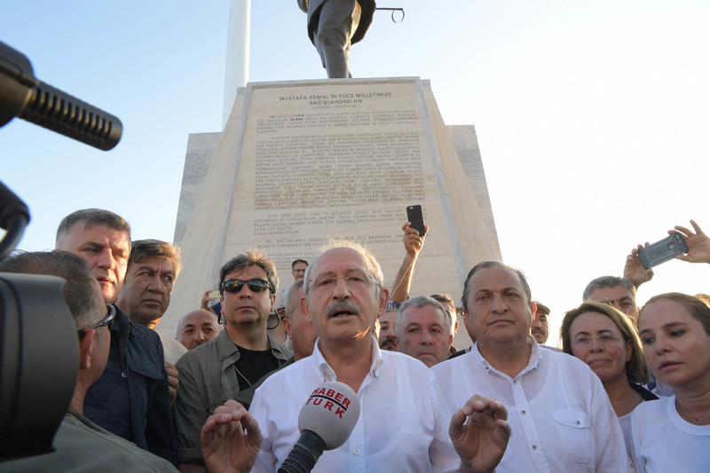 Conkbayırı’na ulaşılmasının ardından anıtın altında bir açıklama yapan CHP Genel Başkanı, “57. alaydakiler sabah kalktılar, buğday çorbası içtiler, şekersiz üzüm hoşafı ve yarım ekmekle sabah kahvaltılarını yaptılar. Ve bugün geldiğimiz yoldan buraya geldiler. Gazi Mustafa Kemal Atatürk onlara “Ben size taarruzu değil ölmeyi emrediyorum" dedi ve 57. alaydakiler hayatlarının topraklar için verdiler. Bayrakları için anneleri, babaları, çocukları, torunları ve bu ülkenin geleceği için canlarını verdiler. Onları rahmetle anlıyoruz onlar bize güzel bir Türkiye'yi emanet ettiler” dedi. Kılıçdaroğlu, şöyle devam etti: