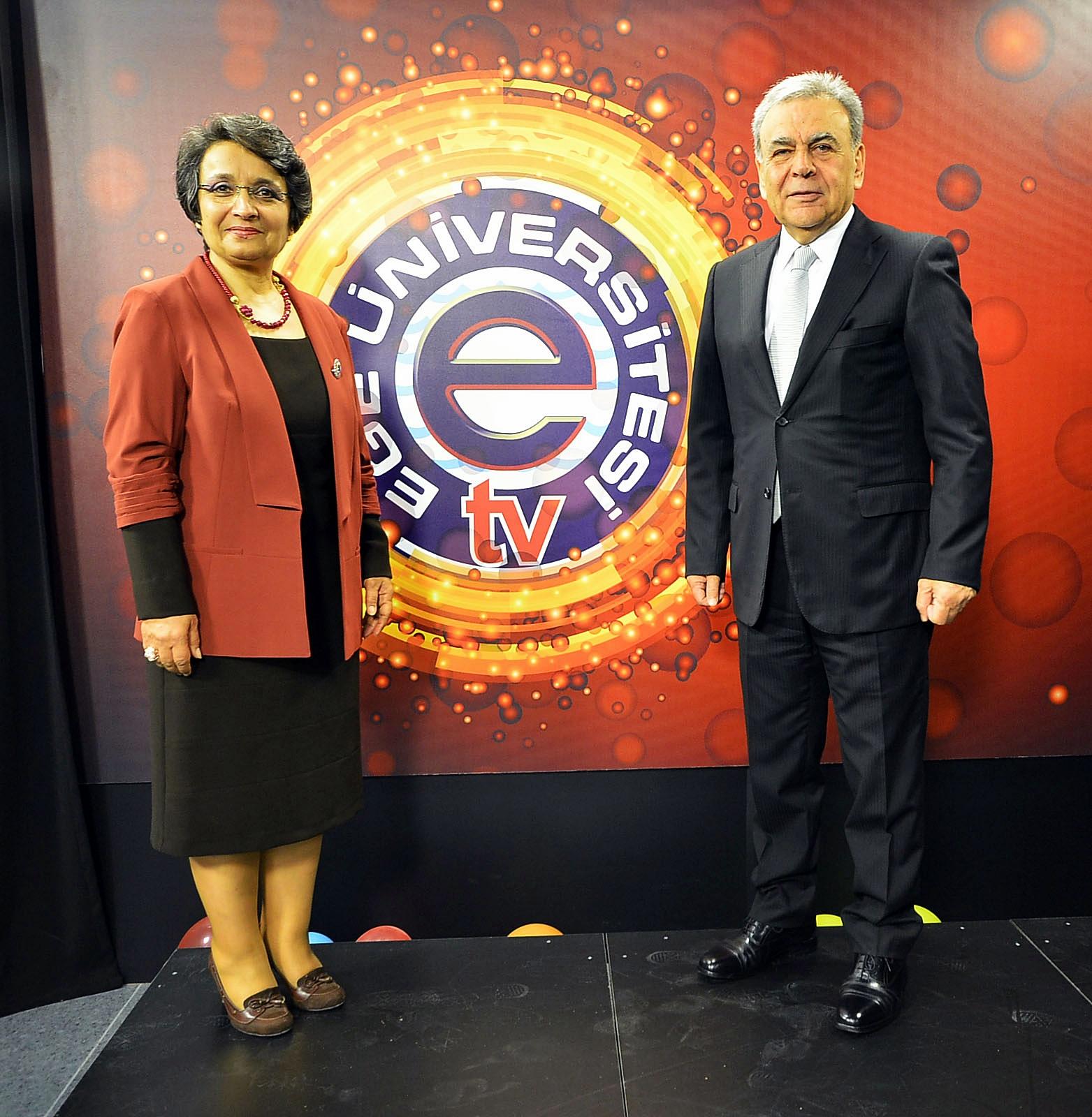 Ege Üniversitesi bünyesinde kurulan Ege Üniversitesi Televizyonu, İzmir Büyükşehir Belediye Başkanı Aziz Kocaoğlu’nu ağırladı. Başkan Kocaoğlu’nu Ege Üniversitesi Rektörü Prof. Dr. Candeğer Yılmaz karşıladı. Bu ay yayın hayatına başlayan televizyonun İzmir’de televizyonculuk alanında farklı ses olacağını belirten Başkan Kocaoğlu, ziyaretinde pasta sürpriziyle karşılaştı.