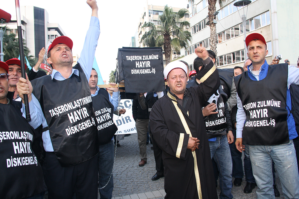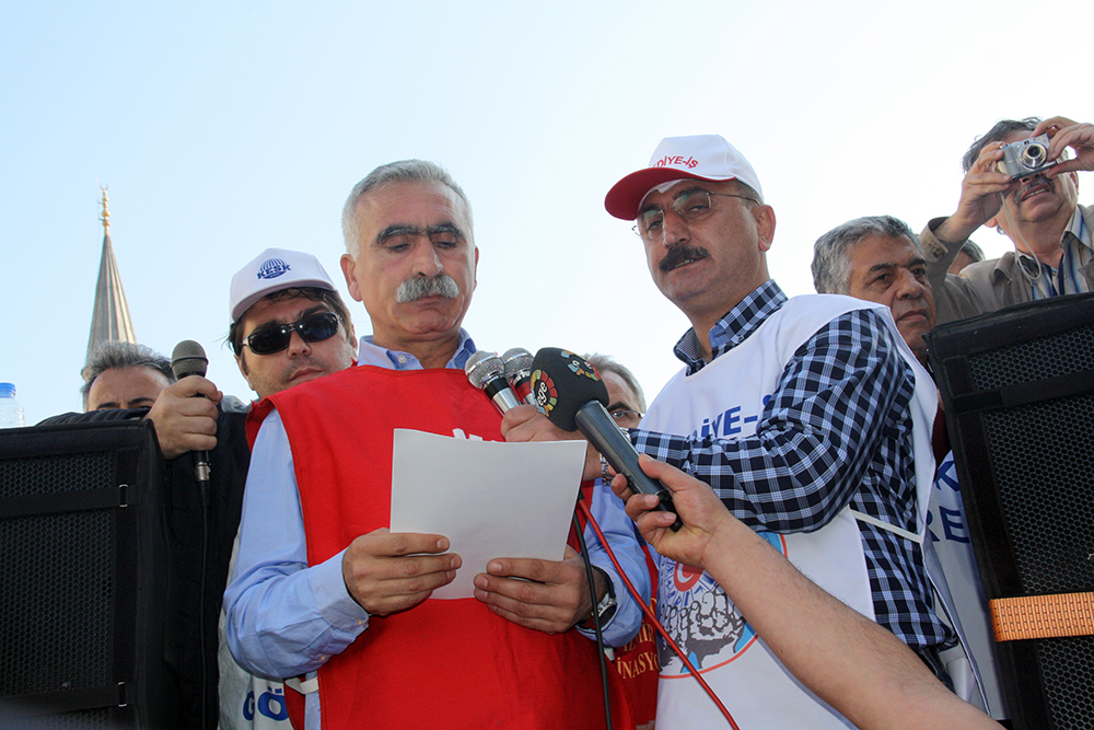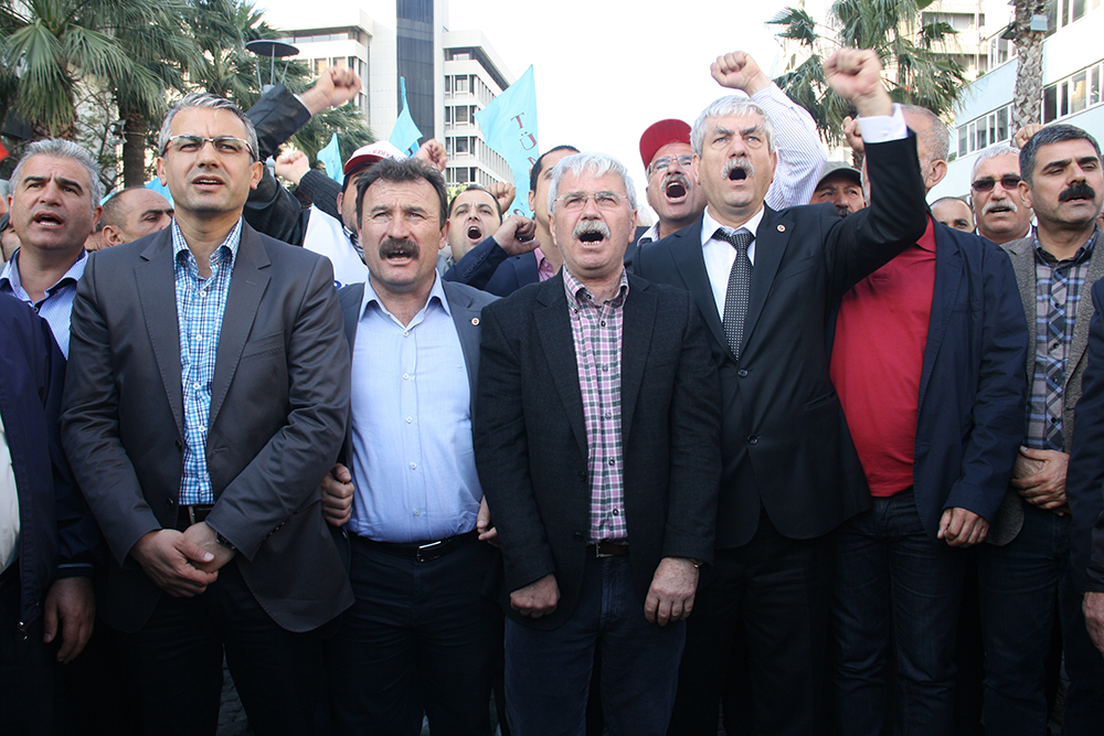 BMC işçileri, SİMECO, PAKMAYA, DHL, 650 İZELMAN işçisi için bir araya geldiklerini belirten DİSK Ege Bölge Temsilcisi Memiş Sarı sözlerine şöyle devam etti: “Ne acıdır ki 1 Mayıs Birlik ve Beraberlik ve Dayanışma Gününde tekrar toplanacağız.” İZSU ve TEKNOYAPI’da çalışan 400 işçinin ücretini alması ve Toplu İş Sözleşme hakkını kullanması için buradayız. Karayolları ve DSİ de çalışan taşeron işçilerin, mahkeme kararıyla asıl işçi sayılmasına rağmen yargı kararını uygulamamasından dolayı mağdur edilen bu kardeşlerimiz için buradayız. PTT ve Demiryollarının özelleştirilmesine hayır demek için buradayız. Kamu emekçilerinin iş güvencesini ortadan kaldıracak düzenlemelere hayır demek için buradayız. Hayatımızın her alanında taşeronlaşmaya ve özelleştirmeye karşı durmak için buradayız. İş güvencenin ortadan kaldırılmasına karşı haykırmak için buradayız.”