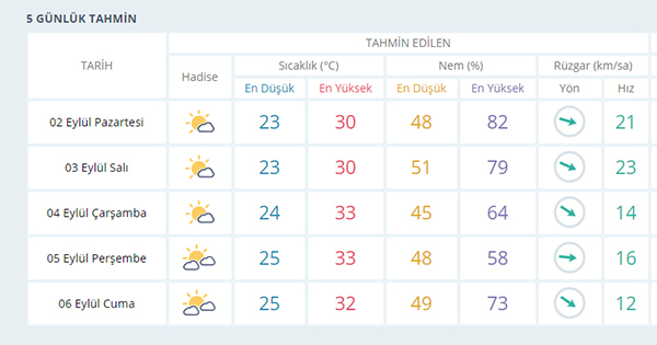 Ege'nin Sesi-İzmir’de yazın kavurucu sıcaklıkları Eylül Ayı’nın ilk haftasında da devam edecek. İzmir'de yeni haftada en yüksek sıcaklıklar 30 ila 33 derece arasında seyredecek.