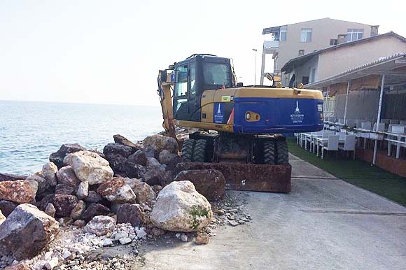 Maltepe Mahallesi'nde sahil kenarında bulunan balık restoranının denize bakan kısmına önceki gün İzmir Büyükşehir Belediyesi'ne ait iş makineleri tarafından dolgu yapıldı. Denize yaklaşık 10 metre dolgu yapılarak, daha önce denize sıfır olan mekanın önü genişletildi. Kıyı Kanunu'na aykırı olarak yapıldığını öne sürdükleri uygulamaya tepki gösteren vatandaşlar, "Deniz, İzmir Büyükşehir Belediyesi'nin tapulu malı değil. Ama, belediye iş makinelerini göndererek burayı 10 metre doldurdu. Daha önce burası denize sıfırdı. Buradaki mekana ciddi bir alan açılmış oldu. Buraya akşamları masa sandalye konulmasının yolu açılarak mekana rant sağlandı" dedi.