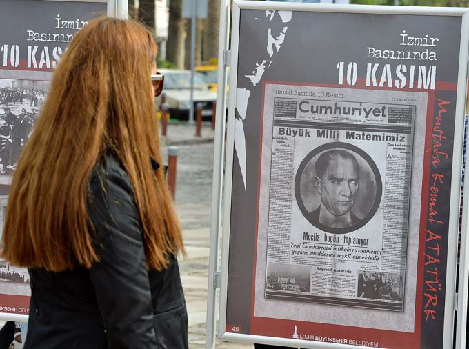 Türkiye Cumhuriyeti'nin kurucusu Mustafa Kemal Atatürk'ü anma etkinlikleri kapsamında Vasıf Çınar Meydanı'nda çok özel bir serginin açılışı gerçekleştirildi. İzmir Büyükşehir Belediyesi Ahmet Piriştina Kent Arşivi ve Müzesi tarafından 10 Kasım Anma etkinlikleri için hazırlanan serginin açılışına İzmir Valisi Mustafa Toprak, Büyükşehir Belediye Başkanı Aziz Kocaoğlu, milletvekilleri Mustafa Moroğlu, Mehmet Ali Susam ve Erdal Aksünger’in yanı sıra çok sayıda İzmirli katıldı. “İzmir Basınında 10 Kasım” isimli serginin açılış töreni öncesi 10 Kasım 1938 günü Atatürk’ün ölümüyle sarsılan halkın üzüntüsünü yansıtan tarihi bir fotoğraf karesi sanatçılar tarafından bir kez daha canlandırıldı. Sokak sanatçılarının etkileyici performansına eşlik eden şiir dinletisi, katılımcılara duygu dolu anlar yaşattı.