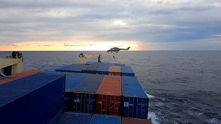 Hamburg Fırkateyni’nin personeli gemiye helikopterle böyle indi. O anlar Türk ticaret gemisi Roseline-A personeli tarafından cep telefonuyla anbean görüntülendi. | Fotoğraf: İHA videosu