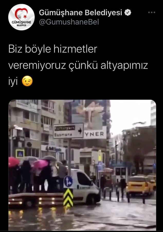 AKP'li Gümüşhane Belediyesi, 2 yurttaşın yaşamını yitirdiği ve birçok kişinin mağdur olduğu sel felaketiyle sosyal medyaya yüklediği bir video ile dalga geçti. Gümüşhane Belediyesi'nin resmi sosyal medya hesabından paylaşılan sel görüntülerine Ciao Bella şarkısı eklenerek, "Biz böyle hizmetler vermiyoruz; çünkü altyapımız iyi” notu düşüldü.
