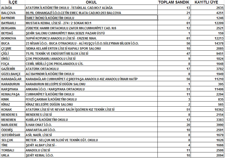 İzmir'de CHP'lilerin oy kullanacakları okullar belli oldu. 29 Mart Pazar Günü 129 bin 107 parti üyesi, parlamentoya gönderecekleri milletvekili adaylarını göndermek için sandık başına gidecek.
