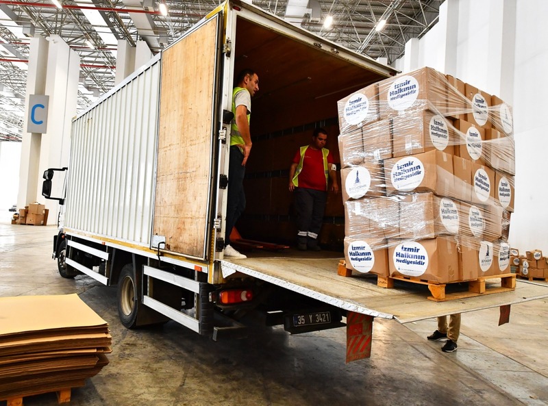 Böylelikle İzmir Büyükşehir Belediyesi Artvin, Adana, Muğla ve Antalya’ya toplam 77 ton malzeme göndermiş oldu.