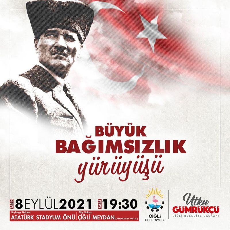 İlk olarak, 8 Eylül Çarşamba günü İzmir Büyükşehir Belediyesi'nin katkılarıyla yenilenen Çiğli Atatürk Stadı'nın açılışı yapılacak. Ardından ilçedeki sivil toplum kuruluşlarının, derneklerin, spor kulüplerinin ve vatandaşların katılımıyla Büyük Bağımsızlık Yürüyüşü gerçekleştirilecek. Etkinlikler, Çiğli Kaymakamlığı karşısında düzenlenecek ve şair Atölyesi Behramoğlu, Yazar Barış İnce ve CHP PM Üyesi Gökhan Günaydın'ın konuşmacı olarak katılacağı "Sanat, Hayat, Toplum" Paneli ile sona erecek.
