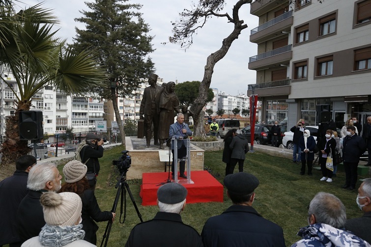 Eşrefpaşa Giritliler Derneği’nden Giritliler Federasyonu adına konuşan Konak Belediye Meclis Üyesi Ali Peynirci de duygusal anlar yaşadığı konuşmasında mübadelenin her iki tarafa da acılar, ızdıraplar yaşattığını belirterek, “Gidenler için de gelenler için de dil, uyum, barınma sorunu oldu ama Büyük Atatürk o dönemde gelen mübadillere sahip çıkmıştır. O acıları yaşayarak bu günlere geldik. Anıtın açılışına ben babamla geldim. Babam anıta bakıp, ‘Şu gördüğünüz anıtta elinde tahta bavulla gelenler tasvir edilmiş. Dedem de Girit’ten Ayvalık’a böyle tahta bir bavulla gelmiş’ dedi. O nedenle heykeltıraşa da o günleri çok güzel anlattığı için, derneğimizin, camiamızın isteğini kırmadığı ve böyle bir anıtı yaptırdığı için teşekkür ederiz” dedi.