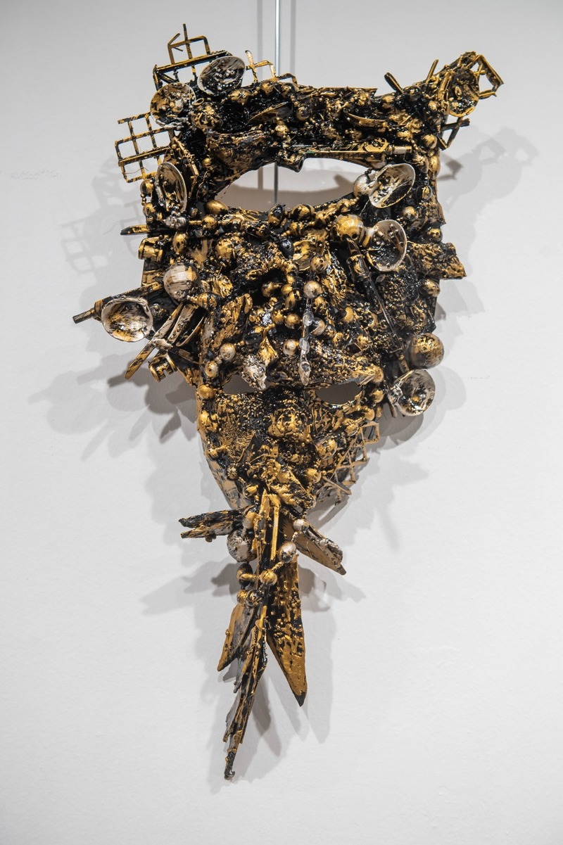 Disiplinlerarası çalışmalarını sürdüren Fırat Karapınar ise özellikle spor ayakkabılardan kaynaklı ciddi bir atığın mevcut olduğunu dile getirerek şöyle konuştu; “Yılda 25 milyar spor ayakkabı üretiliyor ve bunlar geri dönüşüme dahil edilmiyor. Biz ayakkabılardan da farkındalık yaratabileceğimizi düşündük ve atılmış ayakkabıların parçalarından plastik nesnelerden, kumaş parçalarından, insanların yaşamlarına dokunmalarını sağlamaya çalıştık. Bu eserleri yaratırken Zygmunt Bauman’ın ‘Iskarta Hayatlar’ adlı kitaptan esinlendim. Renk olarak altın, gümüş ve bakır gibi sembolik renkler tercih ettim. Bunları seçmemin özel bir nedeni var; madeni değerler tüm dünya sınırlarını yeniden şekillendiriyor ve değerli kılıyor. İzmir’in kent kültürüne nitelikli mekanlar kazandırdığı ve genç sanatçılarla ilgilendiği için İzmir Büyükşehir Belediye Başkanı Tunç Soyer’e teşekkür ederim.”