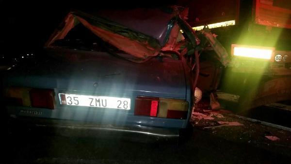 İzmir'in Bayındır İlçesi'nde, bir TIR'a arkadan çarpan otomobilde 54 yaşındaki Hüseyin Çulha öldü, aracı kullanan oğlu 29 yaşındaki İsmail Çulha yaralandı.