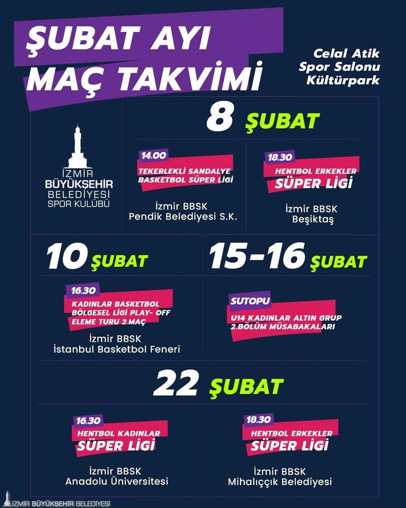 İzmir'de sporun kalbi Kültürpark Celal Atik Spor Salonu'nda atıyor. Bin 700 seyirci kapasitesine sahip tesis şubat ayında birbirinden heyecanlı lig maçlarına ev sahipliği yapacak.
