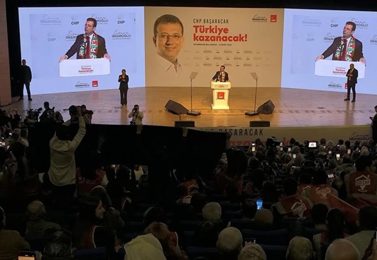 Türkiye Belediyeler Birliği, İstanbul Büyükşehir Belediye Başkanı ve CHP'nin Cumhurbaşkanlığı Ön Seçimi adayı Ekrem İmamoğlu, 23 Mart'ta yapılacak ön seçim öncesi gerçekleştirdiği yurt gezileri kapsamında Diyarbakır'da Sezai Karakoç Kongre ve Kültür Merkezi'nde konuştu. Kürtçe şarkılarla karşılanan ve kürsüde kendisine Amedspor atkısı takılan İmamoğlu, konuşmasında, terörün bitmesinin önemini işaret ederek iktidarın bu konuda tutarsız davrandığı eleştirisini getirdi. Bir yandan barış için bir süreç başlatırken, bir yandan da kayyım politikalarını sürdüren iktidara tepki gösteren İBB Başkanı, "samimiyet" vurgusu yaptı.