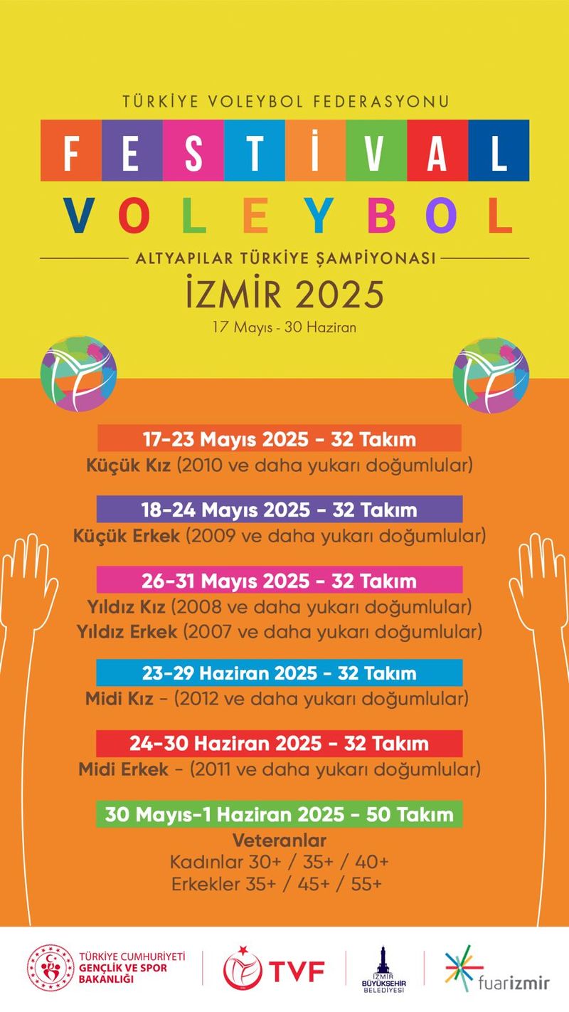 İzmir Büyükşehir Belediyesi ile Türkiye Voleybol Federasyonu'nun iş birliğiyle düzenlenecek Festival Voleybol Altyapılar Türkiye Şampiyonası'nın ev sahibi bu yıl da İzmir oldu. Fuar İzmir, üçüncü kez dev bir spor kompleksine dönüştürülecek, 17 Mayıs - 30 Haziran tarihleri arasında kentte voleybol şöleni yaşanacak.