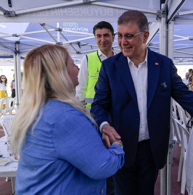 Bayraklı’da yapılan alt yapı yatırımlarını aktaran İZSU Genel Müdürü Gürkan Erdoğan, geçen temmuz ayında kentte yaşanan ve Bayraklı’yı etkileyen yağışlara değindi. Erdoğan, “Mevsim normallerinin çok üzerinde olan bu yağışta Bayraklı Sevgi Yolu’nda ve civarında su baskınları oldu. Biz o gece saat bire kadar Cemil Başkan’ımızla birlikte bu sokaklarda incelemelerde bulunduk. Taşkın olan yerleri başkanımızla ziyaret ettik. Başkanımız o gece ayrılırken buradaki sorunu çözmemizi, bunun için ne gerekiyorsa yapmamız talimatını verdi. Biz, öncelikli olarak pazaryeri ve civarında çalışmalara başladık. O çalışma bir yandan ilerlerken, Sevgi Yolu’nu da içine alan bu bölgenin projelerini hazırlayarak ihalesini yaptık. 180 gün içinde buradaki işi tamamlayarak sorunu tamamen çözmeyi hedefliyoruz. Bunun yanında İzmir’in 30 ilçesinde, İZSU olarak yatırımlarımızı sürdürüyoruz. Yine Körfez’in temizliğine etki edecek kanalizasyon ve yağmur suyu hatlarını inşa ediyoruz. Buca, Karabağlar, Bornova ve Bayraklı’da çalışmalarımız aralıksız devam ediyor. Karabağlar, Konak ve Bayraklı’yı kapsayan ve 110 milyon Euro kredi ile büyük bir alt yapı yatırımı için ihalelerimizi yaptık. İzmir Büyükşehir Belediyesi İZSU Genel Müdürlüğü olarak gece gündüz demeden İzmir halkına kaliteli hizmet sunmak için çalışıyoruz” diye konuştu.