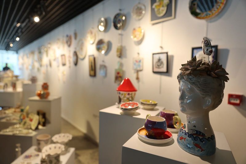 Konuşmasında sanat emekçilerine, katılımcılara ve özellikle sergiye katkı sunan eğitimcilere teşekkür eden Kınay, daha sonra çocuk resim kursu eğitmeni Oylum Gökçen Öterbülbül ve çini kursu eğitmeni Nesrin Dikmen’e doğa dostu fidan sertifikası verdi.