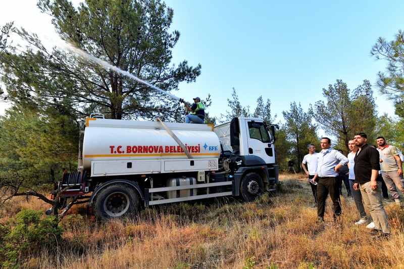 Bornova'nın yeşil cenneti Yakaköy Mahallesi'nde çıkan ve kısa sürede ormanlık alana yayılan yangına Bornova Belediyesi ekipleri anında müdahale etti. Tarım arazisinde başlayan ve rüzgarla birlikte büyüyerek yerleşim yerlerini tehdit eden alevler karşısında, Bornova Belediye Başkanı Ömer Eşki’nin talimatıyla tüm birimler teyakkuza geçti. Belediye ekipleri, bölgeye sevk edilen iş makineleri ve su tankerleriyle alevlere adeta kalkan oldu.