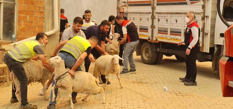 Hayvanlar kamyonlarla tahliye ediliyor