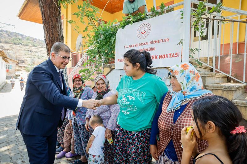 İzmir Büyükşehir Belediye Başkanı Dr. Cemil Tugay, Ödemiş’teki yangında en çok zarar gören Karadoğan Mahallesi’nde inceleme yaptı. Yangından etkilenen köylerin kış öncesi yeniden ayağa kaldırılması için kararlılık mesajı veren Başkan Tugay, yıl sonuna kadar yanan köylerden su faturası alınmayacağını söyledi. Başkan Tugay, “Çocuklara sözümüz, yaşlılara sözümüz, engelli insanlarımıza sözümüz. Kimsenin mağdur olmasına, sahipsiz olmasına izin vermeyeceğiz. Biz buradayız” dedi.