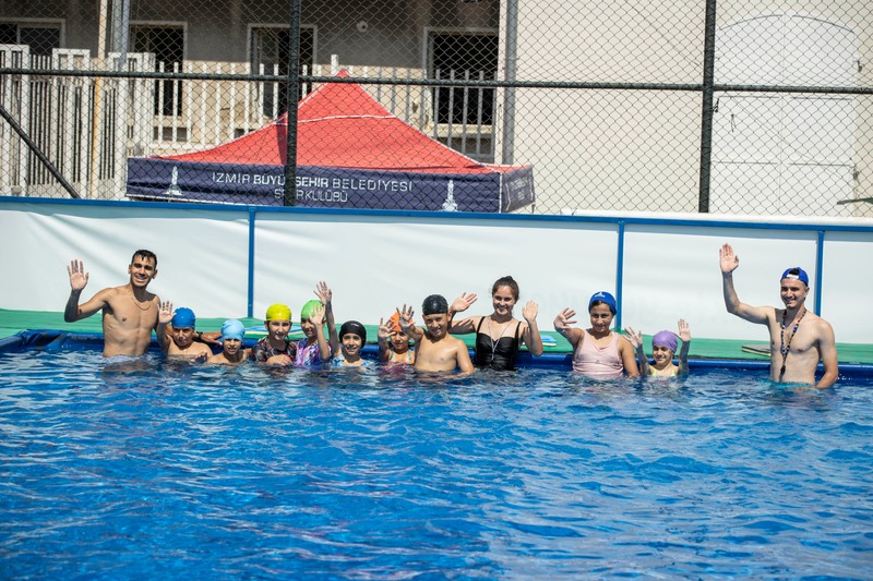 İzmir Büyükşehir Belediyesi, sporu kentte yaygın hale getirmek, deniz ile havuza ulaşamayan çocukları suyla buluşturmak amacıyla portatif havuzları hayata geçirdi. Konak Pazaryeri Mahallesi ve Bayraklı Cengizhan Mahallesi’nde kurulan ve 2 ay boyunca 7-13 yaş arası çocuklara hizmet verecek portatif havuzlara ilgi yoğun oldu. Yaz tatilini eğlenerek ve yüzme öğrenerek geçirecek minikler uygulamadan mutlu olduklarını dile getirdi. Veliler de İzmir Büyükşehir Belediyesi’nin portatif havuz hizmetinden duydukları memnuniyeti aktardı.