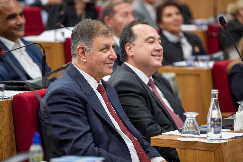 Zor bir dönemde belediye başkanlığı yaptıklarını, tüm kamu kurumlarının borçlu olduğunu kaydeden İzmir Büyükşehir Belediye Başkanı Dr. Cemil Tugay, “Hepimiz gerçekten belediyelerde başkan ya da meclis üyesi olarak üstlendiğimiz sorumluluklarla zor şartlar altında ülkemize, insanlarımıza hizmet etmeye çalışıyoruz. Bu zorlukların kendi şehrimizden, bölgemizden, ülkemizden kaynaklanan sebepleri olduğu kadar küresel boyutta da yansımaları var. Ekonomist dergisinde çıkan bir yazı ülkelerin hiçbir zaman borçlanmadıkları kadar borçlanmış durumda olduğunu söylüyor. İnanın dünya genelinde kamu yönetimi, kamu kaynaklarının kullanımı ile ilgili çok büyük sıkıntıların yaşandığı bir dönemdeyiz” diye konuştu.