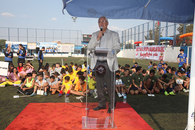 ASKF Başkan Vekili İsmail Karabulut ve TUFAD Başkanı Dr. Şaban Acarbay'ın konuşmalarından sonra kürsüde yerini alan Başkan Muhittin Selvitopu, sporun ülke geleceği için çok önemli olduğunu, sporla birlikte gençlerin kültürle, sanatla, bilimle donanımlı olarak yetiştirilmesi gerektiğini belirterek, "Bunların birisi eksik olursa, bir tarafımız sağlıklı olmaz. O nedenle Karabağlar Belediyesi olarak biz de bu alanlarda ki eksiklikleri gidermeye çalışıyoruz. Karabağlar'ın her şeye ihtiyacı var. Özellikle spor alanlarına ihtiyacı var. Gençlerimizin, çocuklarımızın ve tüm toplumun spor yapacağı mekanlarının mutlaka olması lazım. Bu bakışla da Karabağlar Belediyesi'nin bu dönem içerisinde ki en önemli ve en maliyetli projesi Uzundere Gençlik Merkezi Projesi olacak. Eylül ayı içerisinde ihalesi gerçekleştirilecek. 32 dönümlük bir alanda, 2 kapalı salon, yarı olimpik yüzme havuzu, tenis, basketbol, voleybol ve 2 bin kişi kapasiteli futbol sahası bir kompleksi gerçekleştireceği. Ne pahasına olursa olsun, özellikle dönem içerisinde Karabağlar'ın hizmetine sunacağız. Çünkü, Karabağlar'ın, spor kulüplerimizin, gençlerimizin buna ihtiyacı var ve İzmir'de örnek spor tesislerinden bir tanesi olacak ve İzmir'de buz pateninin altyapısını oluşturacak bir buz paten pistini de orada gerçekleştireceğiz." dedi.
