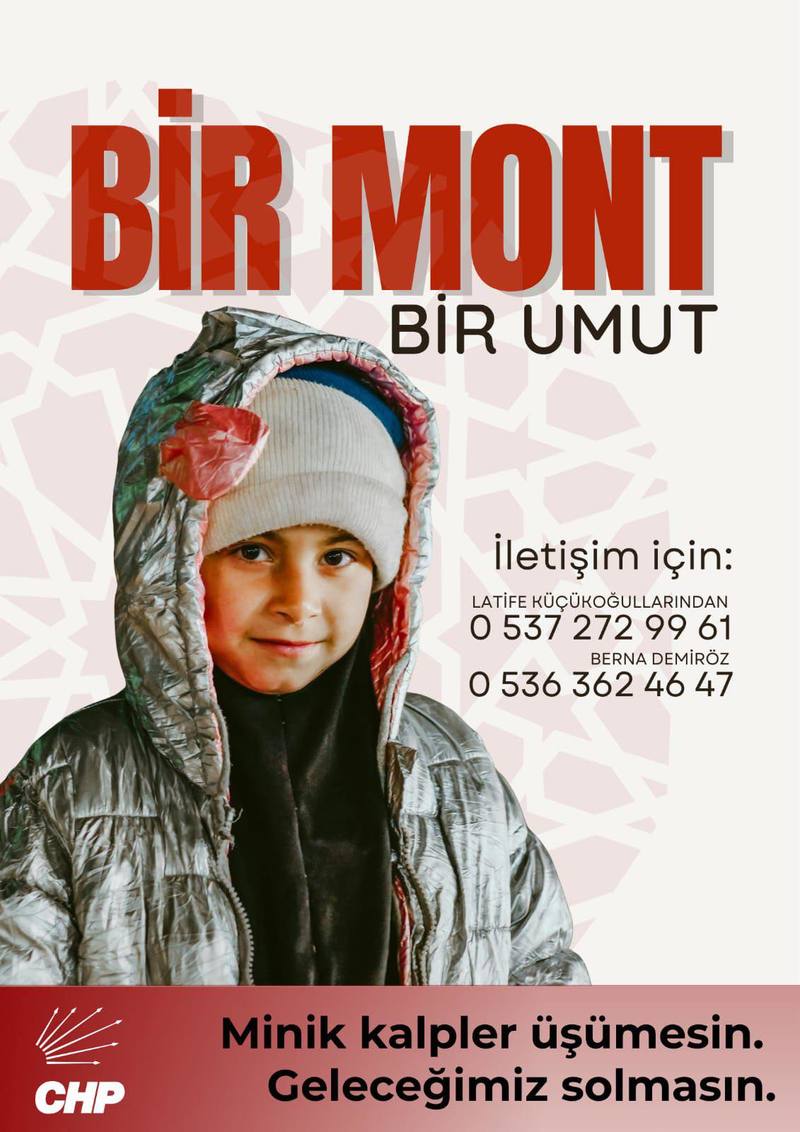 CHP Konak İlçe Başkanı Serkan Kalmaz yaptığı açıklamada: "Soğuk kış günleri kapımızdayken, bir çocuğun üşümemesi için yapacağımız en küçük iyilik bile büyük bir umuda dönüşebilir. Bu yıl “Bir Mont Bir Umut” diyerek yola çıkıyoruz. İhtiyaç sahibi çocuklarımıza ulaştırmak üzere, yeni mont bağışlarınızı CHP KONAK ilçemize bekliyoruz. Her mont, bir kalbi ısıtacak; her dayanışma, geleceğe dair umudumuzu büyütecek. Gel, bu kış bir çocuğun hayatına dokunalım. Bir mont ver, bir umut ol" dedi.