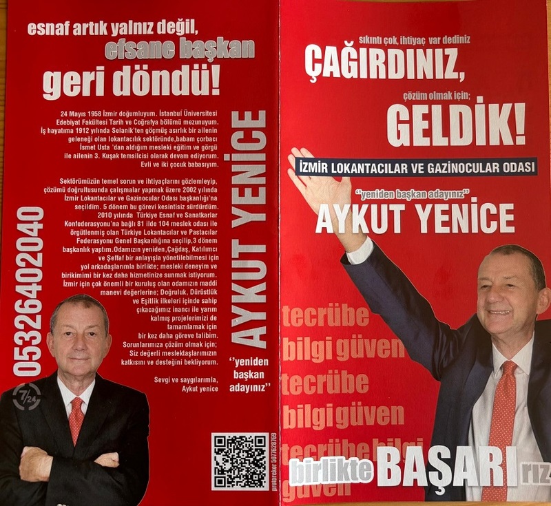 İzmir Lokantacılar ve Gazinocular Odası Başkan Adayı Aykut Yenice sektörün sorunlarından bahsederek: “Ben 1912’de Selanik’ten İzmir’e göç etmiş bir ailenin lokantacılık sektöründe 3. Kuşak temsilcisiyim. 2002 yılında İzmir Lokantacılar Odası başkanlığına seçildim. 20 yıl bu görevi sürdürdüm. Türkiye genelinde odaların başkanlığını yaptım. Biz kendimizi yaşadığımız kente katkı koyan insanlar olarak görüyoruz. Sektör her geçen gün daha sıkıntılı hale geliyor. Pandemi bizi etkiledi. İstanbul’da yaşanan zehirlenme olayı da etkiledi. Çok ağır eleştirilerle karşı karşıya kaldık. Ama olayın aslı farklı çıktı. Sektörün göz önünde olması bizi etkiliyor. Kayıt dışı ve haksız rekabetle uğraşıyoruz. Pos cihazlarından alınan paylarda sorunların başında geliyor. Şuandaki oda temsilcilerinin bu sorunları çözebileceğine inanmadığımız için tekrar aday oldum” dedi.