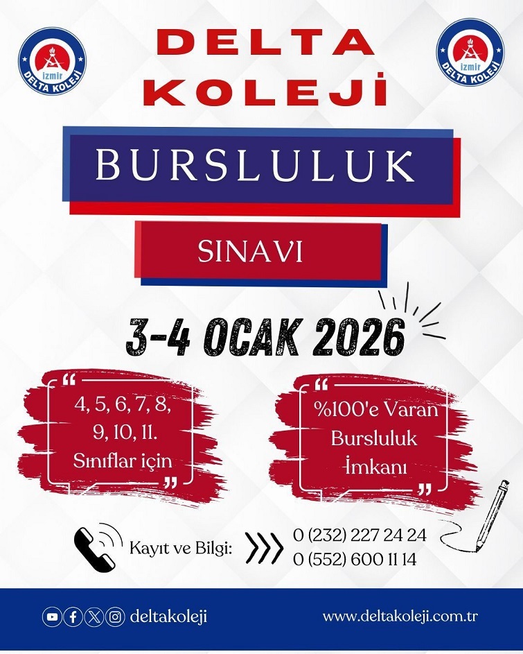 Ege'nin Sesi- Delta Koleji 3-4 Ocak 2026 tarihinde bursluluk sınavı düzenleyecek. 4,5,6,7,8,9,10,11. sınıf öğrencileri için düzenlenecek sınav için duyuru yapıldı.