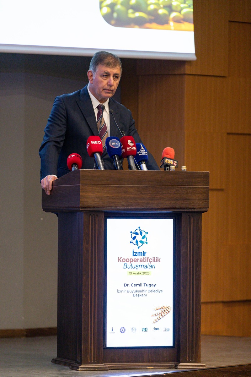 İzmir Büyükşehir Belediye Başkanı Dr. Cemil Tugay, 2025’in Birleşmiş Milletler (BM) tarafından “Uluslararası Kooperatifler Yılı” ilan edilmesi nedeniyle İzmir Ticaret Odası’nda (İZTO) düzenlenen İzmir Kooperatifçilik Buluşmaları programına katıldı. “Kooperatifler Daha İyi Bir Dünya Kurar” anlayışıyla organize edilen buluşmada yerel yönetimlerin, iş dünyasının, kooperatiflerin temsilcileri ve bürokratlar, alanlarında uzman isimler ile akademisyenler yer aldı.