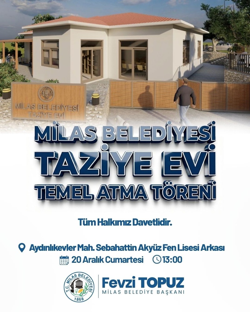 Önemli bir hizmeti hayata geçireceklerini belirten Milas Belediye Başkanı Fevzi Topuz, “Yakınlarını kaybeden vatandaşlarımızın baş sağlığı dileklerini daha rahat bir ortamda kabul edebilecekleri Taziye Evi için yapım çalışmalarına başlıyoruz. Oldukça kapsamlı bir alanı hayata geçireceğimiz çalışmanın ilk adımlarından biri olan temel atma törenine tüm vatandaşlarımızı davet ediyorum” dedi.