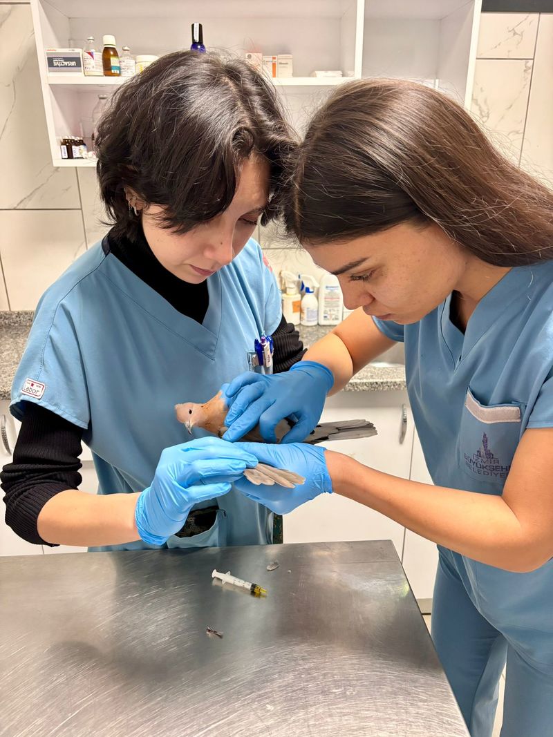Zor günlerde dayanışmayı büyüten İzmir Büyükşehir Belediyesi ekipleri, yağmurun altında umudu ayakta tutmaya devam ediyor. Bu anlayışın bir başka örneği ise İzmir Büyükşehir Belediyesi Zabıta Dairesi Başkanlığı ekiplerinin yaralı halde bulduğu yaban güvercininde görüldü. Ekipler, yaralı güvercine hassasiyetle yaklaşarak, onu Veteriner İşleri Dairesi Başkanlığı Hayvan Sağlığı Şube Müdürlüğü’ne bağlı Kültürpark Küçük Hayvan Polikliniği’ne getirdi. Veteriner hekimler, güvercine hemen müdahale etti. Güvercinin sağ kanadında açık yara ve sağ göz çevresinde travmatik bulgular tespit edildi. Kırık olmadığı saptanan güvercinin yaraları temizlenerek tedavisi yapıldı. Güvercin sağlığına kavuştuktan sonra Doğa Koruma ve Milli Parklar İzmir Şube Müdürlüğü’ne teslim edilecek.