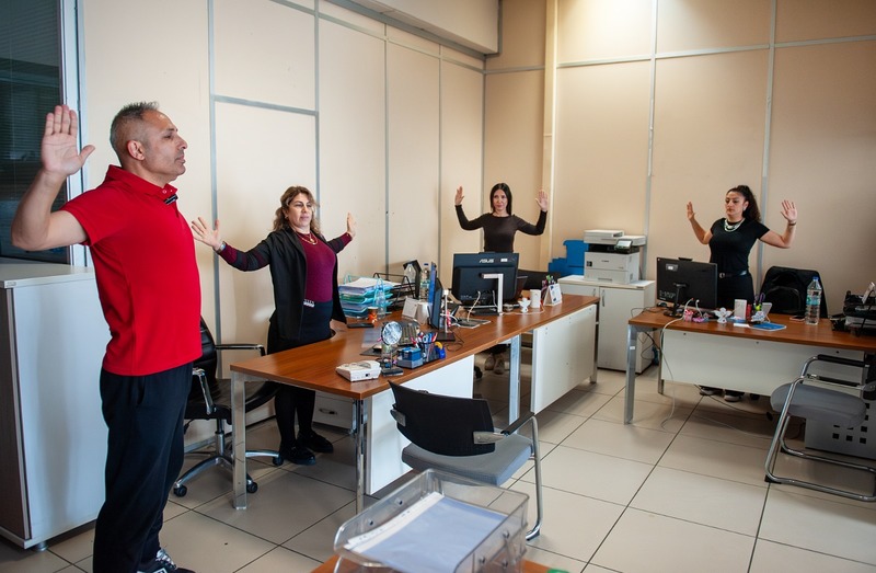 Hizmet birimlerinde gerçekleştirilen egzersiz programı kapsamında personel; kan dolaşımını hızlandıran, iskelet ve kas sistemini güçlendiren açma-germe hareketlerini deneyimledi. Personelin yaşam kalitesini ve çalışma standardını yükseltecek ofis egzersizleri, iş verimliliğini de artıracak. Karşıyaka Belediyesi personelinin yoğun ilgi gösterdiği uygulama, sağlıklı çalışma ortamı hedefini desteklemeye devam edecek. Ana hizmet binasında başlatılan bu zindelik hareketi, kısa süre içerisinde dış birimlerde de yaygınlaştırılacak.