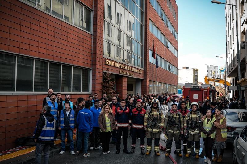 İzmir Büyükşehir Belediyesi, Oğuzlar Ek Hizmet Binası’nda düzenlediği deprem ve yangın tatbikatıyla personelin kriz anlarında doğru, hızlı ve koordineli hareket etme becerisini güçlendirdi; gerçeğini aratmayan senaryoyla afetlere hazırlık bir kez daha test edildi.