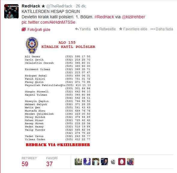 RedHack Polislerin Telefon Numaralarını Yayınladı