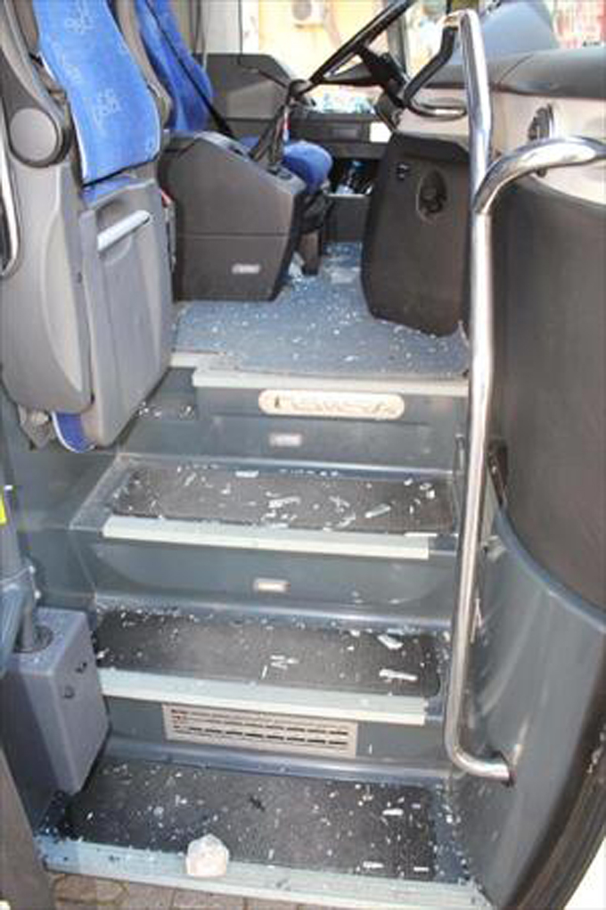 İZMİR'in Bayraklı İlçesi'nde, 45 yaşındaki Ercan Geneş'in kullandığı CHP'nin seçim çalışmalarında kullandığı otobüs, kimliği belirsiz yaklaşık 15 kişilik grup tarafından taşlandı. Otobüsün camları kırılırken, olayda yaralanan olmadı.